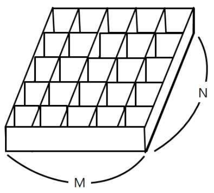 - 첫 줄에는 상자의 크기를 나타내는 두 정수 M, N이 주어지며, M은 가로 칸의 수, N은 세로 칸의 수를 나타냄