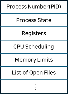 - CPU 스케줄링 정보 : 프로세스가 언제, 어떤 순서로 CPU를 할당 받을지에 대한 정보